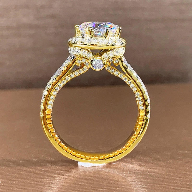 F1709 Women's White Gold Diamond Engagement Ring Round Brilliant Cut Natural G Color Halo Setting