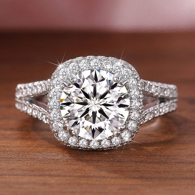 F1736 Women's White Gold Diamond Engagement Ring Round Brilliant Cut Natural D Color Halo Setting
