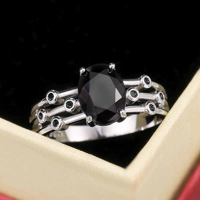 F174 Women's Black Onyx Oval Gemstone Ring Prong Setting Engagement Fashion Rings