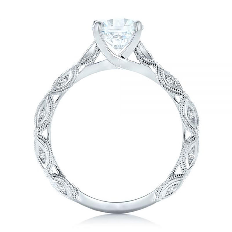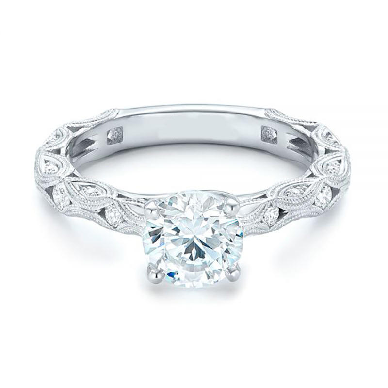 F190 Women's White Gold Engagement Ring With Natural Round Brilliant Cut Diamond D Color Side Stones