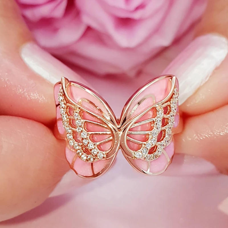 Anello Cocktail a Farfalla F192 per Donna, Zirconia Cubica Creata in Laboratorio, Micro Pavé, Gioiello alla Moda, Regalo