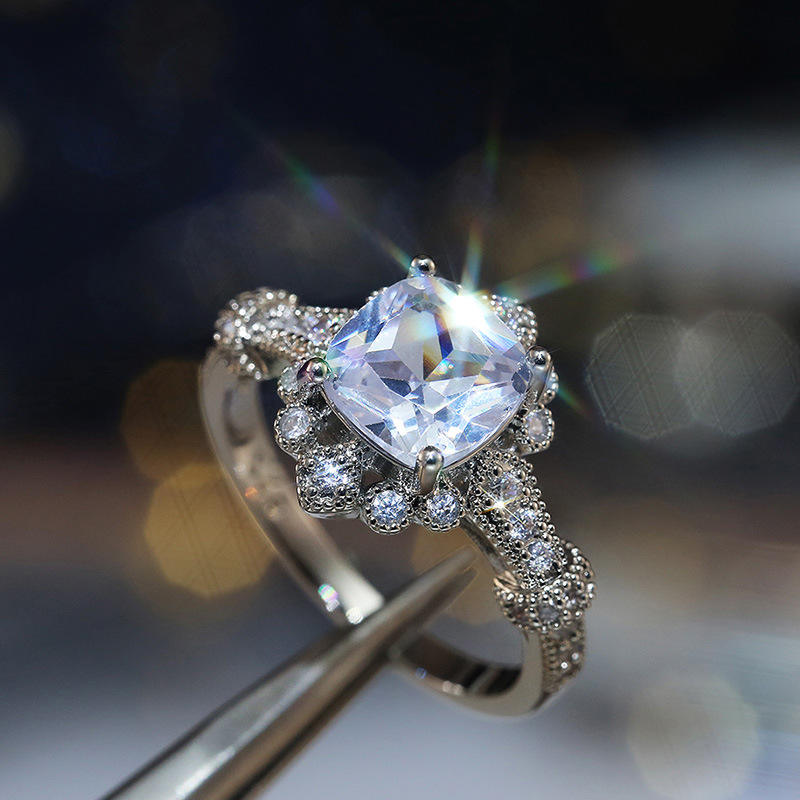 F198 Vintage Diamond Ring Cushion Cut Natural Diamond Engagement Women's Jewelry