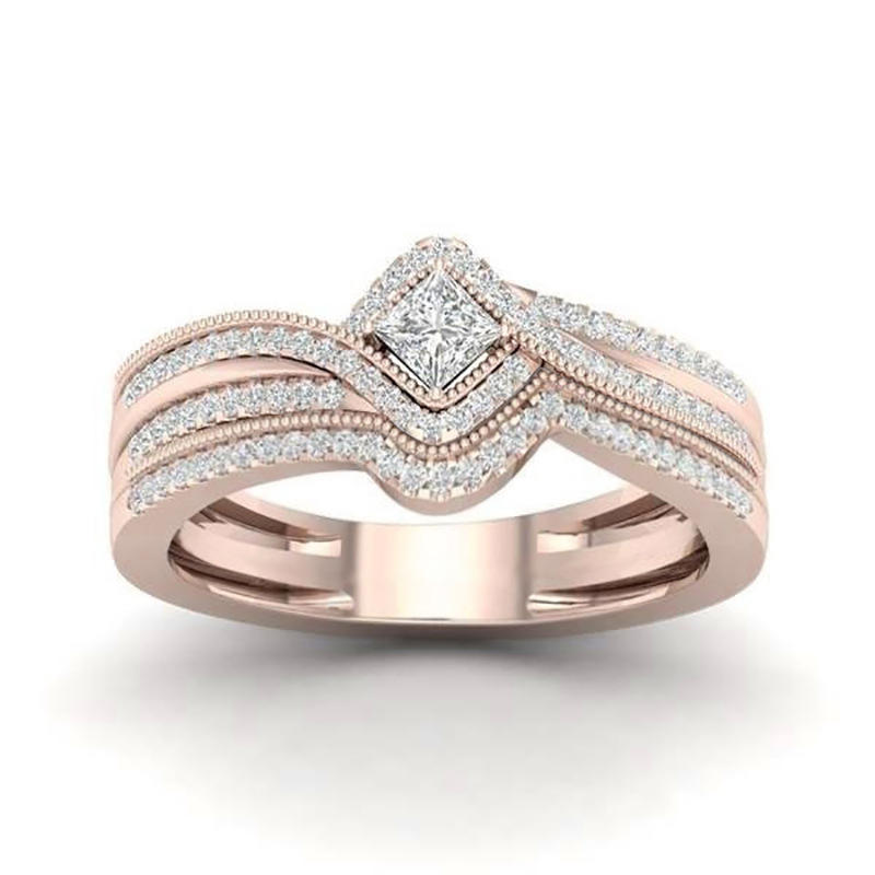 Anello di Fidanzamento F223 con Diamante Taglio Principessa, Diamante Naturale, Oro Rosa, Gioiello Romantico da Donna, Fede Nuziale in Oro 14K