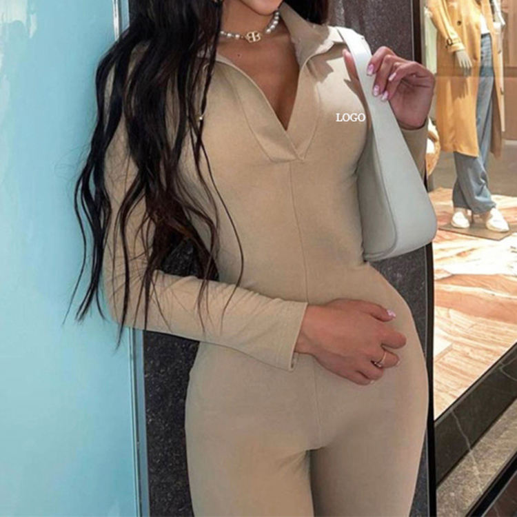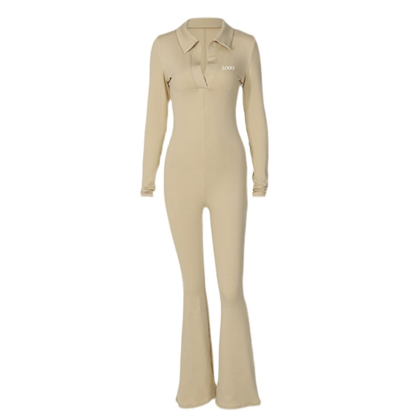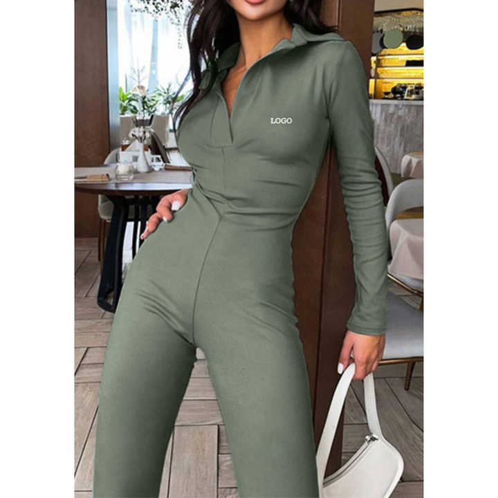 F230284 Custom Fall Autumn Winter 2026 One Piece Bodysuit Zipper Overalls Women Long Sleeve Ladies Wide Leg Jumpsuits