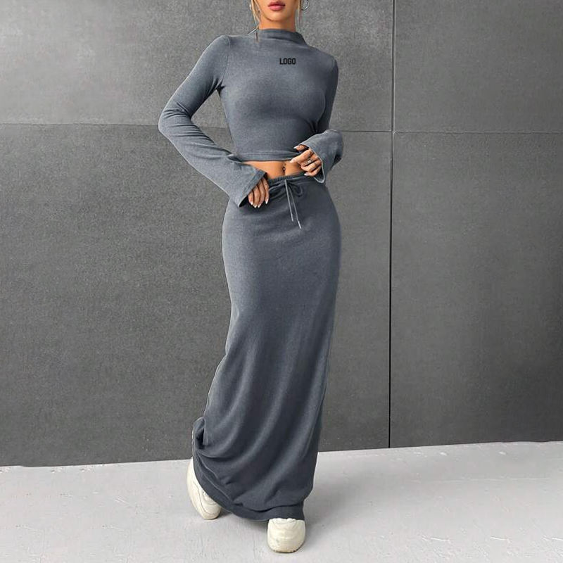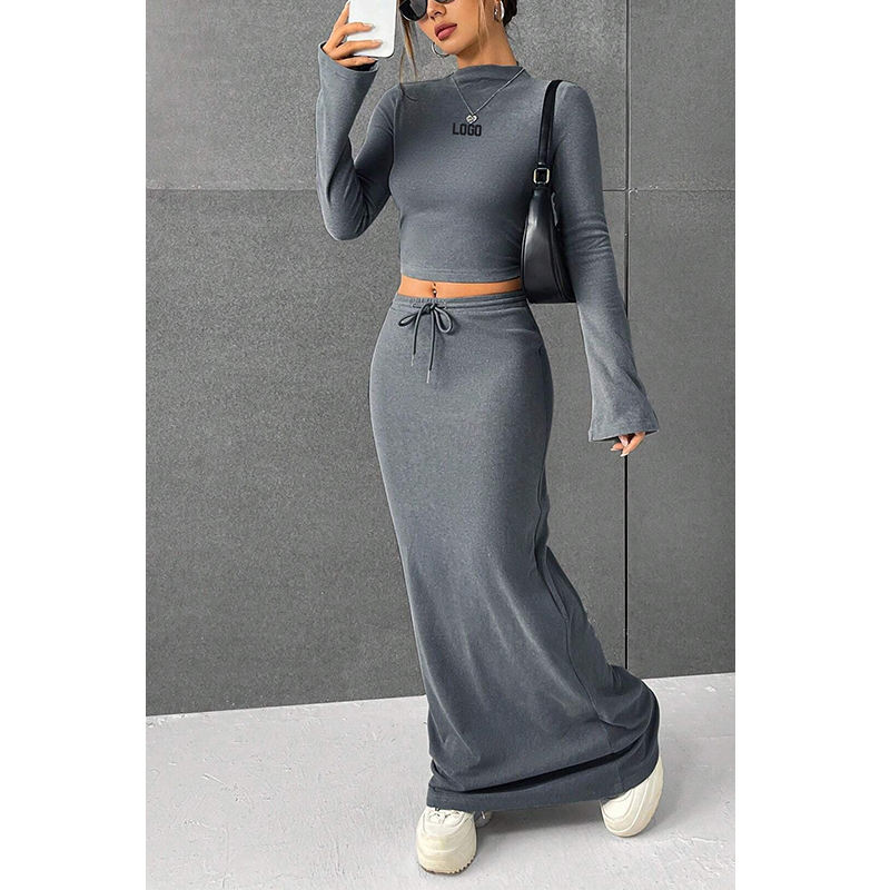 F230699 Women's Skirts Designer Clothes Women Long Sleeve Crop Top T Shirt and Casual Ladies Dresses Long Maxi Y2k Skirt