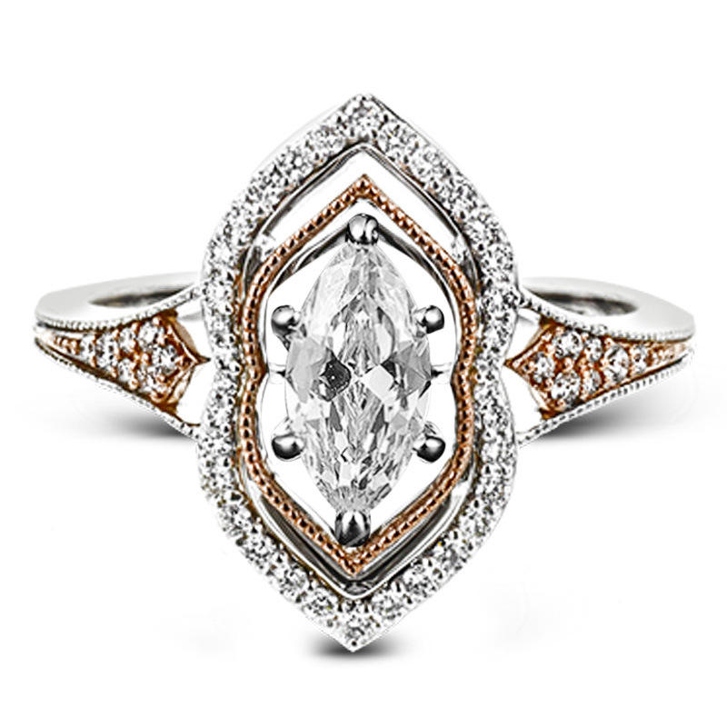 F285 Women's White Gold Marquise Cut Diamond Engagement Ring With Natural G Color Side Diamonds