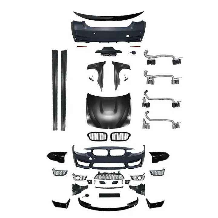 Kit carrozzeria per BMW F30 M3 (2013-2018) – PP iniettato, 1 set, 196×78×54 cm, paraurti anteriore, minigonne, scarico, cofano, parafango, spoiler, griglia