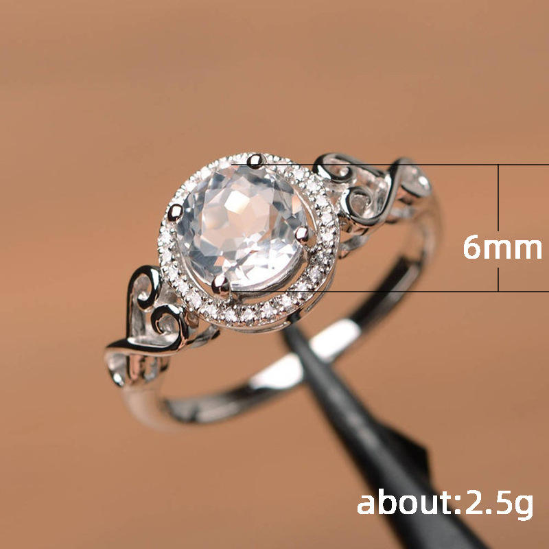 F333 Flower Ring 925 Sterling Silver Crystal Round Brilliant Cut Prong Setting Women's Engagement Ring