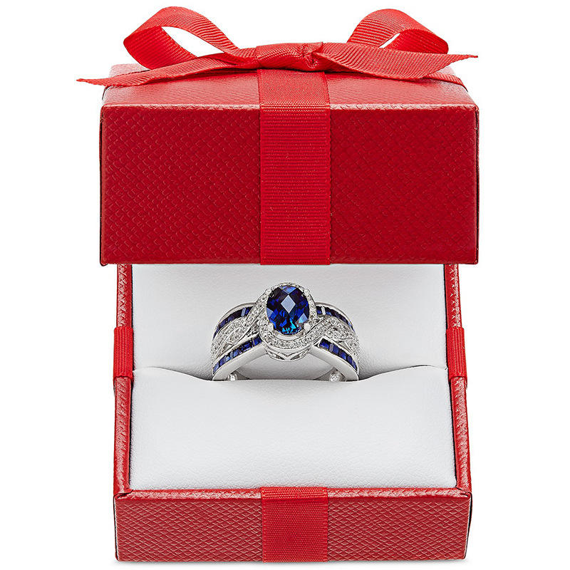 F352 Sapphire Ring 925 Silver Oval Cut Gemstone Channel Setting Women's Engagement Fine Jewelry