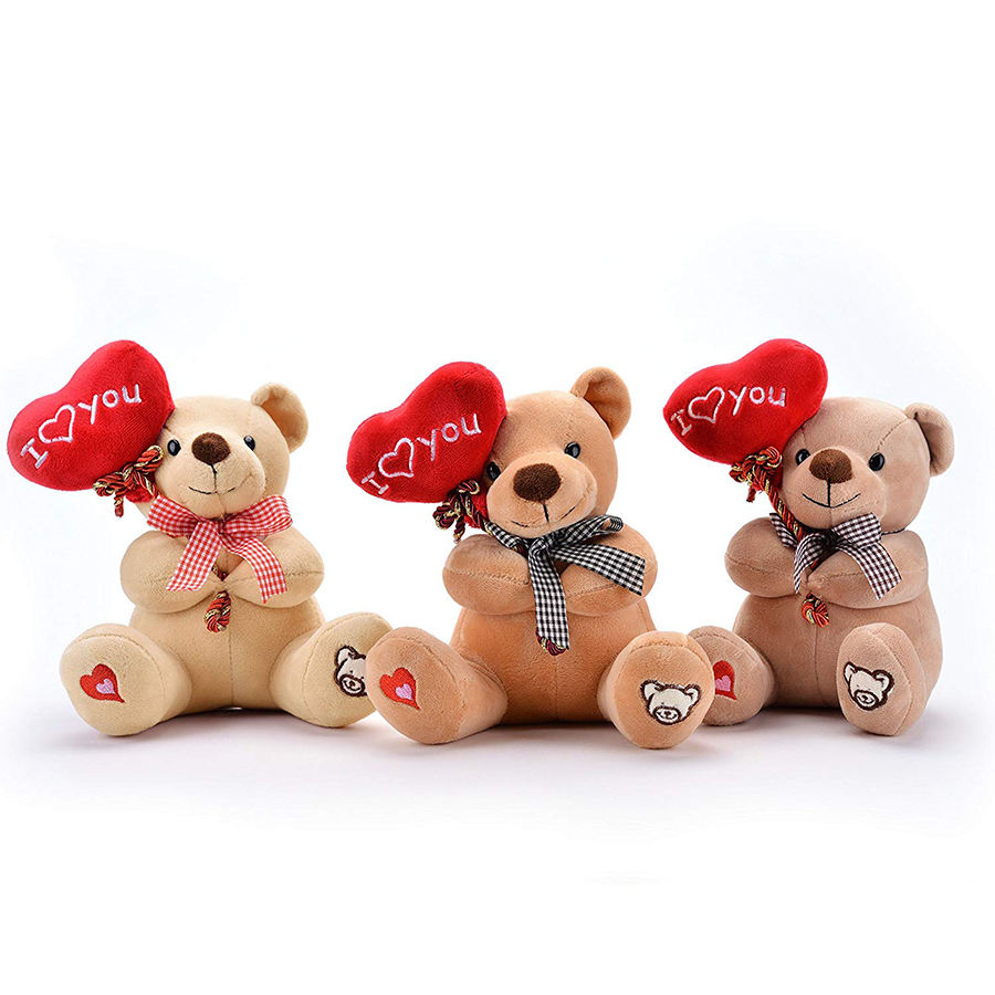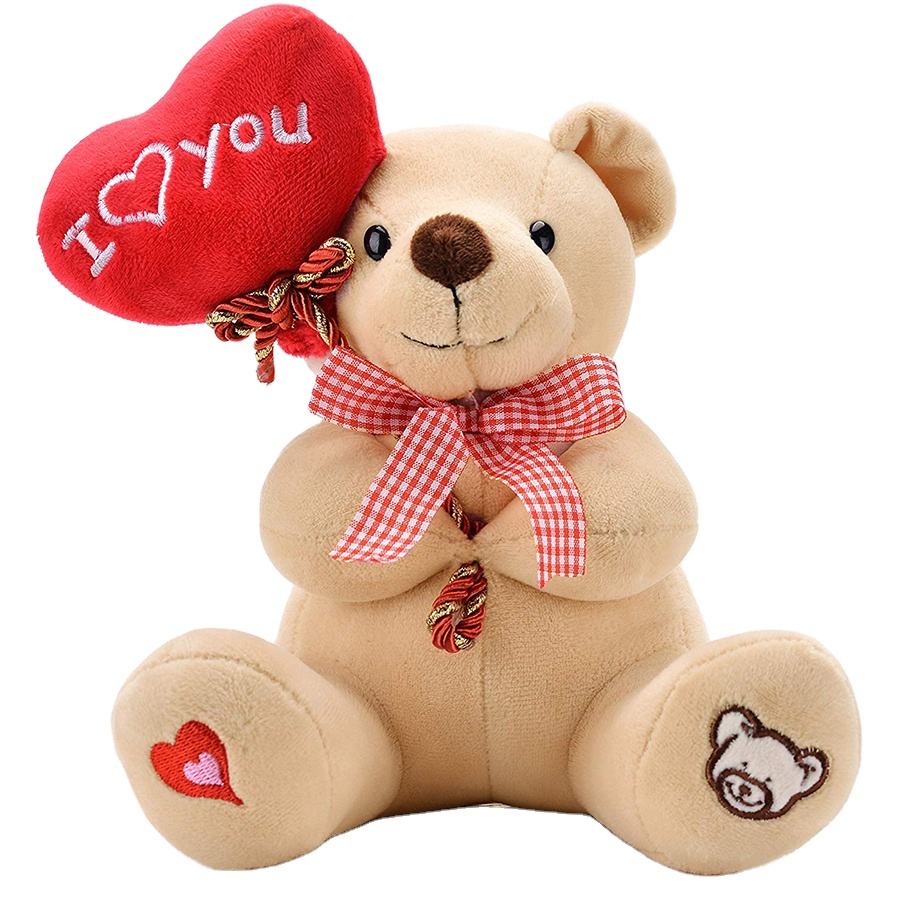 F382 fabbrica ODM OEM sorriso di peluche orsacchiotto cuore ti amo regali dell'amante Beige orsacchiotto peluche giocattoli per macchine gru