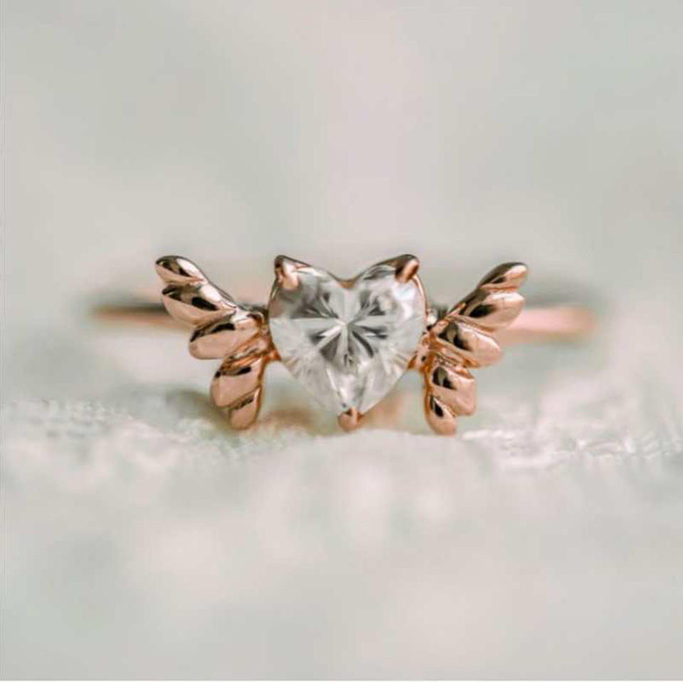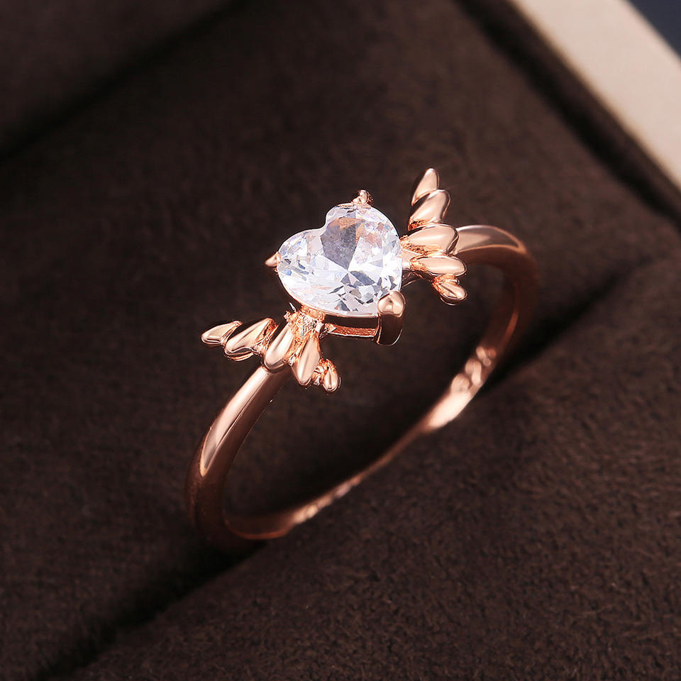 Anello con Cristallo a Forma di Cuore F481, Placcato in Oro Rosa, Montatura a Griffe, Fede di Fidanzamento per Donne