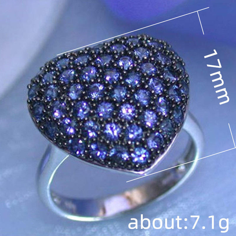 F489 Anello a Forma di Cuore in Argento 925 con Cristalli e Strass, Gioiello da Festa per Donne
