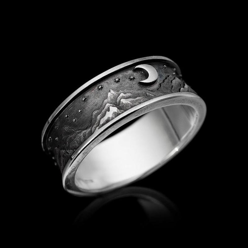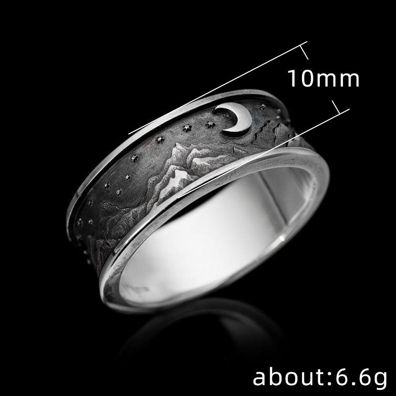 Anello in Argento F546 con Motivo Lunare, Stile Vintage, Unisex, per Uso Quotidiano, Gioielleria Raffinata