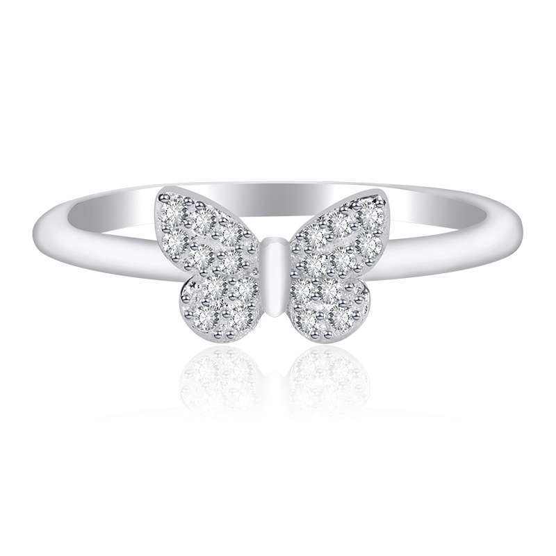 Anello F583 a Farfalla con Diamante in Argento per Donna, Elegante per Uso Quotidiano, Taglio Brillante Rotondo, Pietra Principale Naturale Colore G