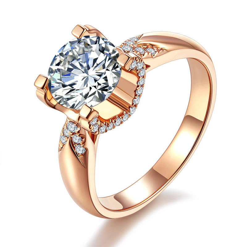 Anello F652 in oro bianco con diamante taglio brillante rotondo, colore G naturale, gioiello da fidanzamento da donna
