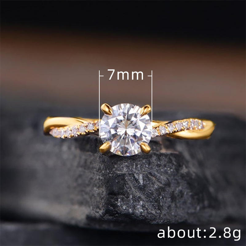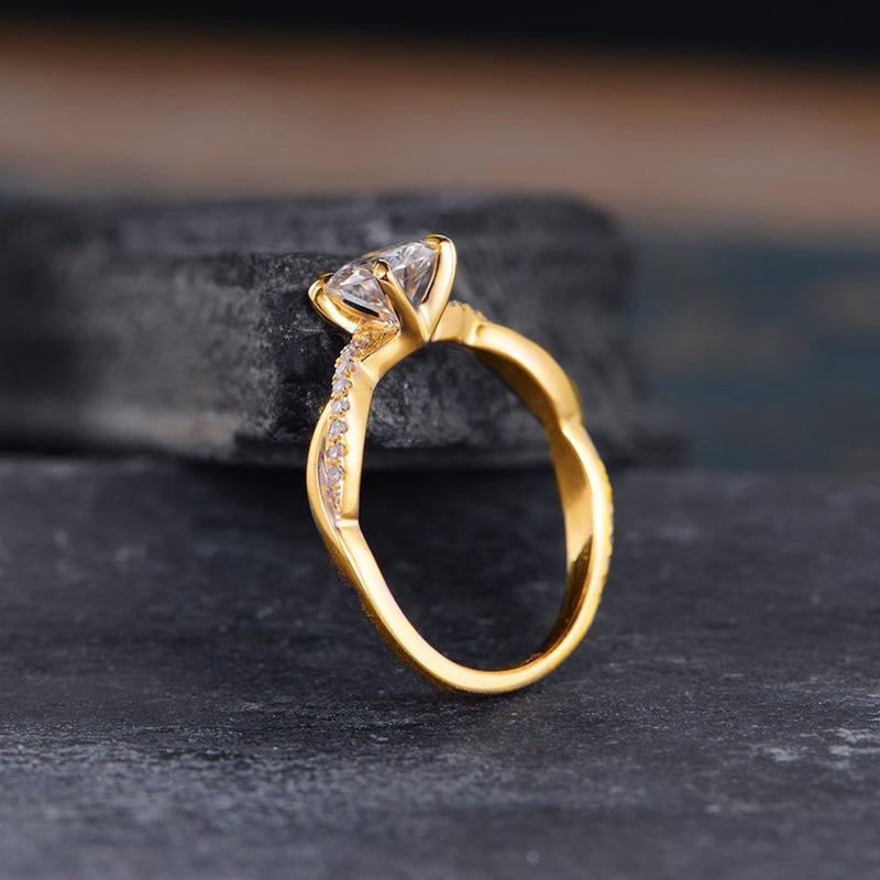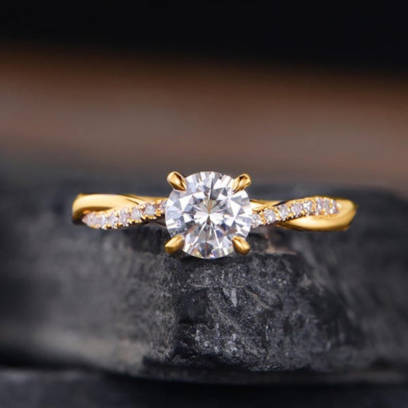 F662 Women's Yellow Gold Diamond Ring Round Brilliant Cut Natural Diamond Engagement Ring G Color Side Stones