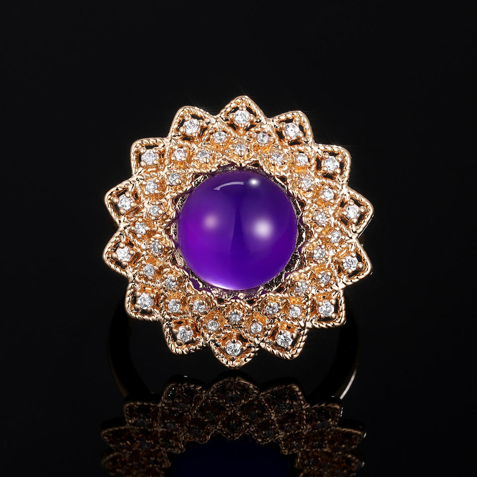 F684 Women's Cocktail Ring Flower Shape Amethyst Round Natural Stone Pave Setting Party Fashion Rings