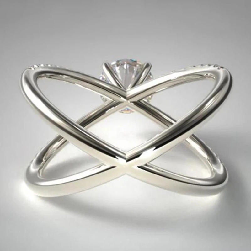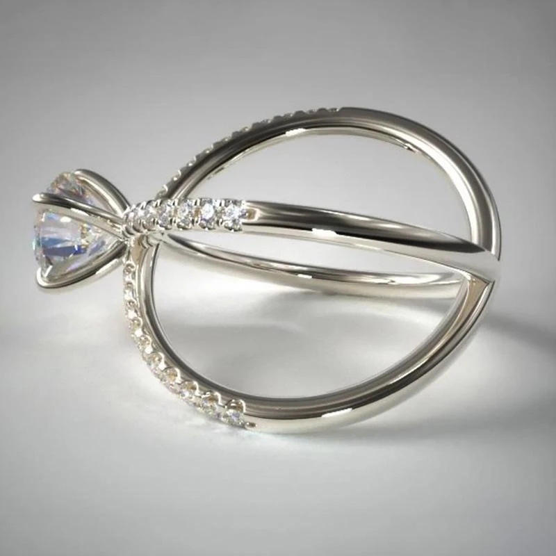 F710 Women's White Gold Diamond Engagement Ring Round Brilliant Cut Natural Diamond D Color Side Stones