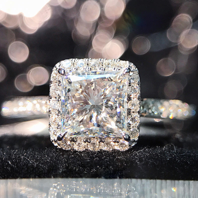 Anello con Diamante Taglio Principessa F731 in Oro Bianco, Colore D Naturale, Gioiello da Donna per Fidanzamento