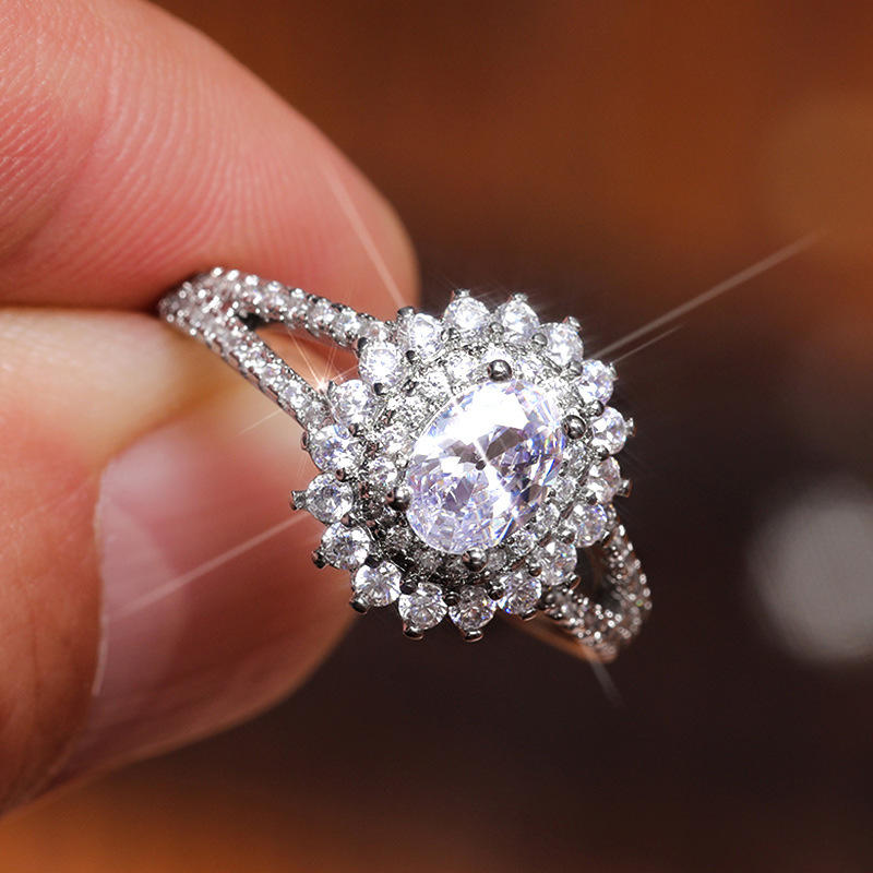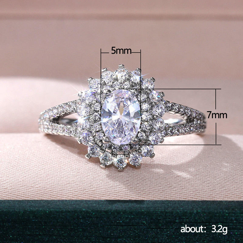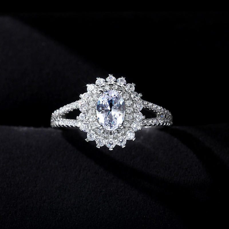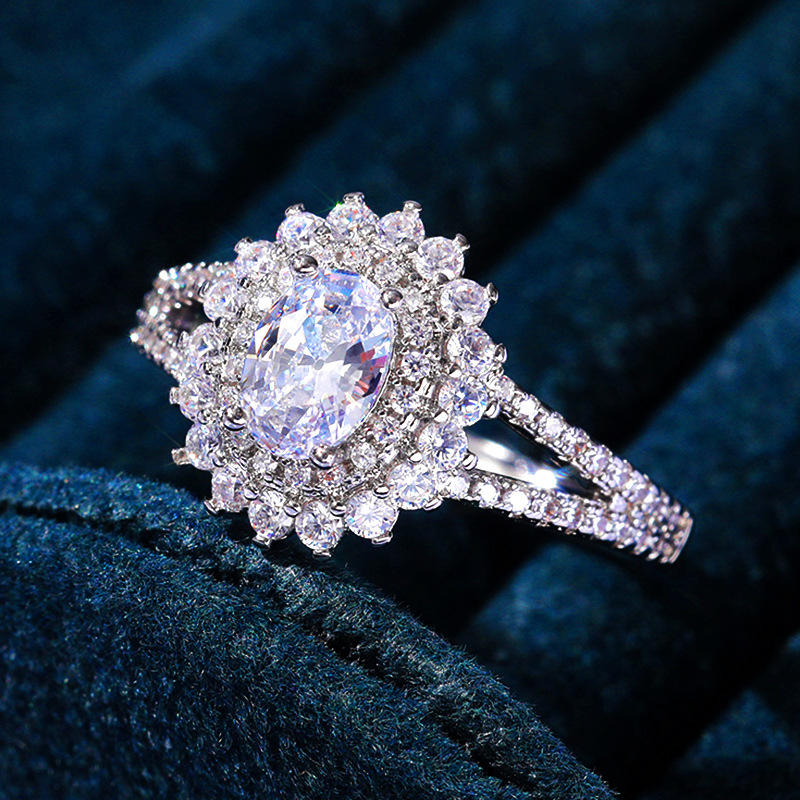 Anello F744 con Diamante Naturale Taglio Ovale, Classico Anello di Fidanzamento per Donna