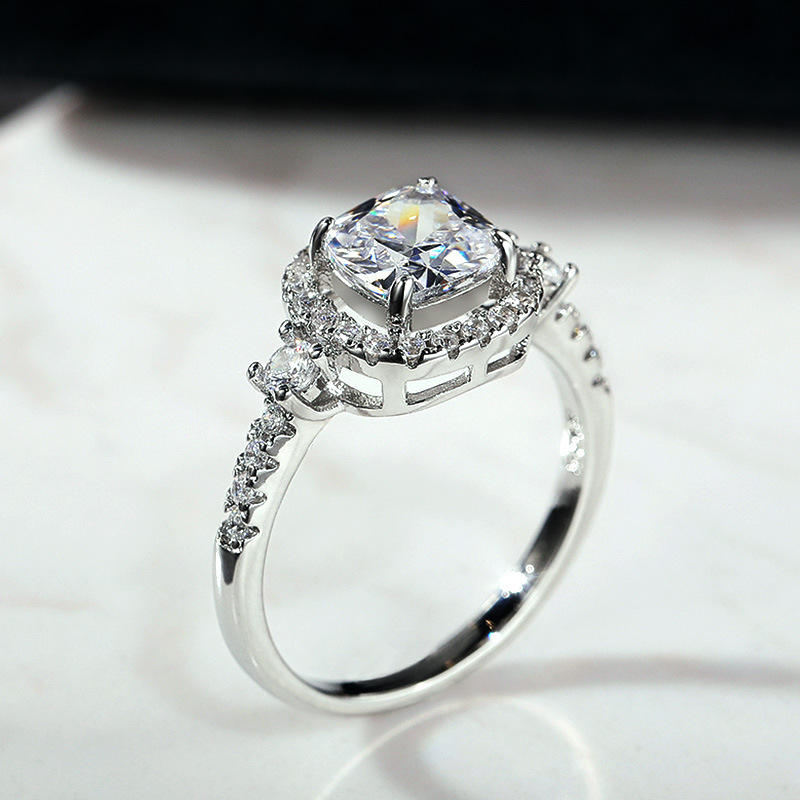 F750 Women's White Gold Engagement Ring Cushion Cut Natural Diamond D Color Halo Setting