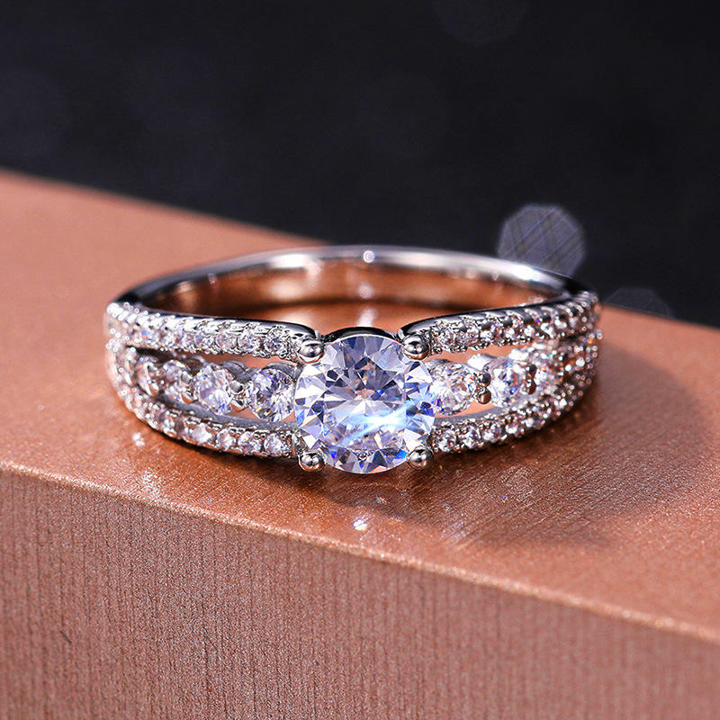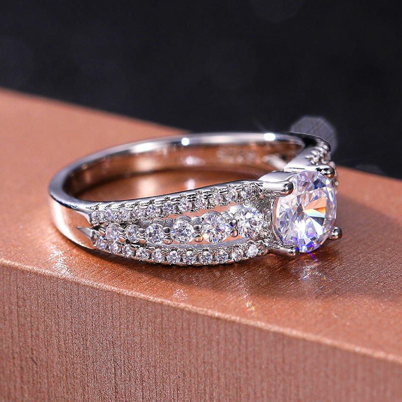 F752 Silver Diamond Ring Women's Engagement Round Brilliant Cut Synthetic Lab Grown Diamond Side Stones G Color