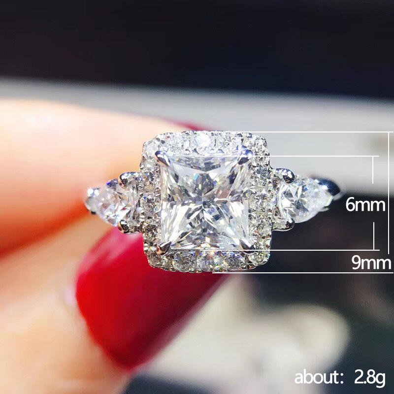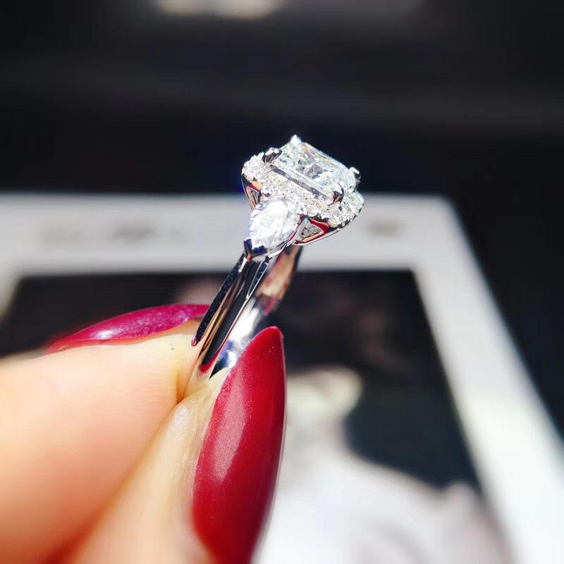 F754 Women's White Gold Diamond Engagement Ring Radiant Cut Natural Diamond D Color Halo Design