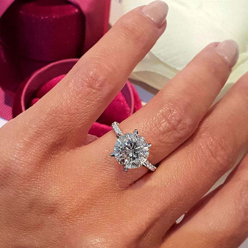 F778 Diamond Ring Round Brilliant Cut Natural White Gold D Color Classic Engagement Women's Jewelry