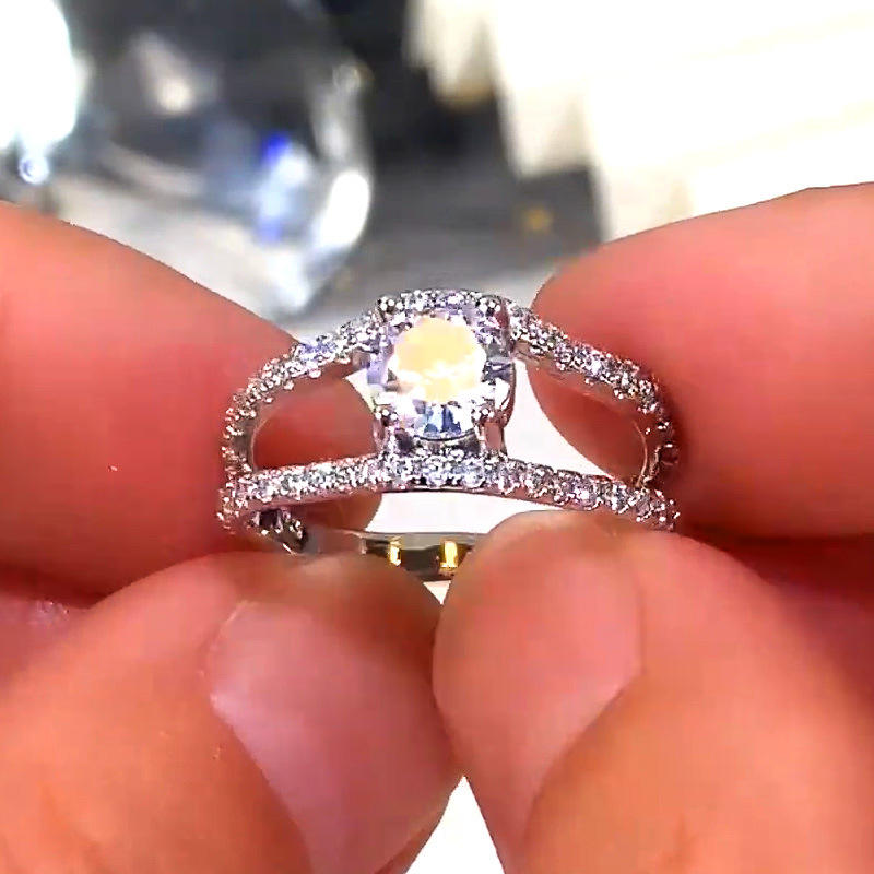 F786 Women's White Gold Diamond Ring Round Brilliant Cut Natural G Color Engagement Ring With Side Diamonds