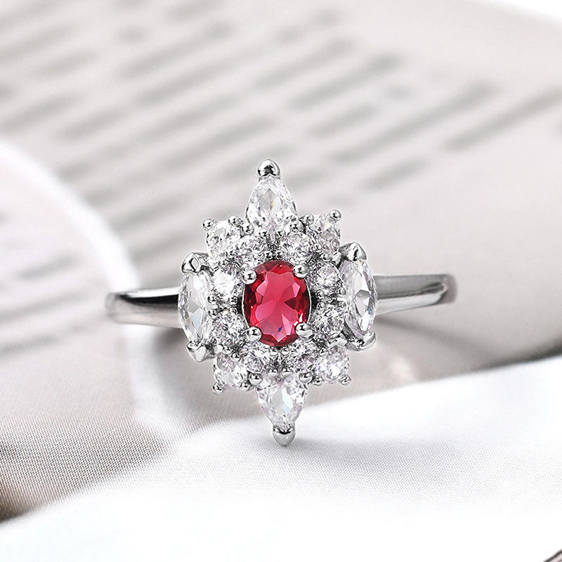 Anello F788 con Rubino e Diamanti a Goccia in Oro Bianco, Gioiello Raffinato da Donna per Fidanzamento