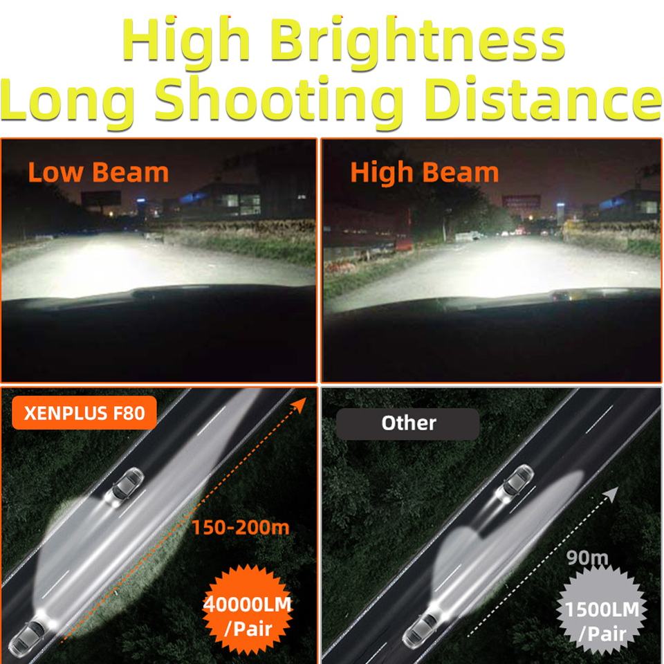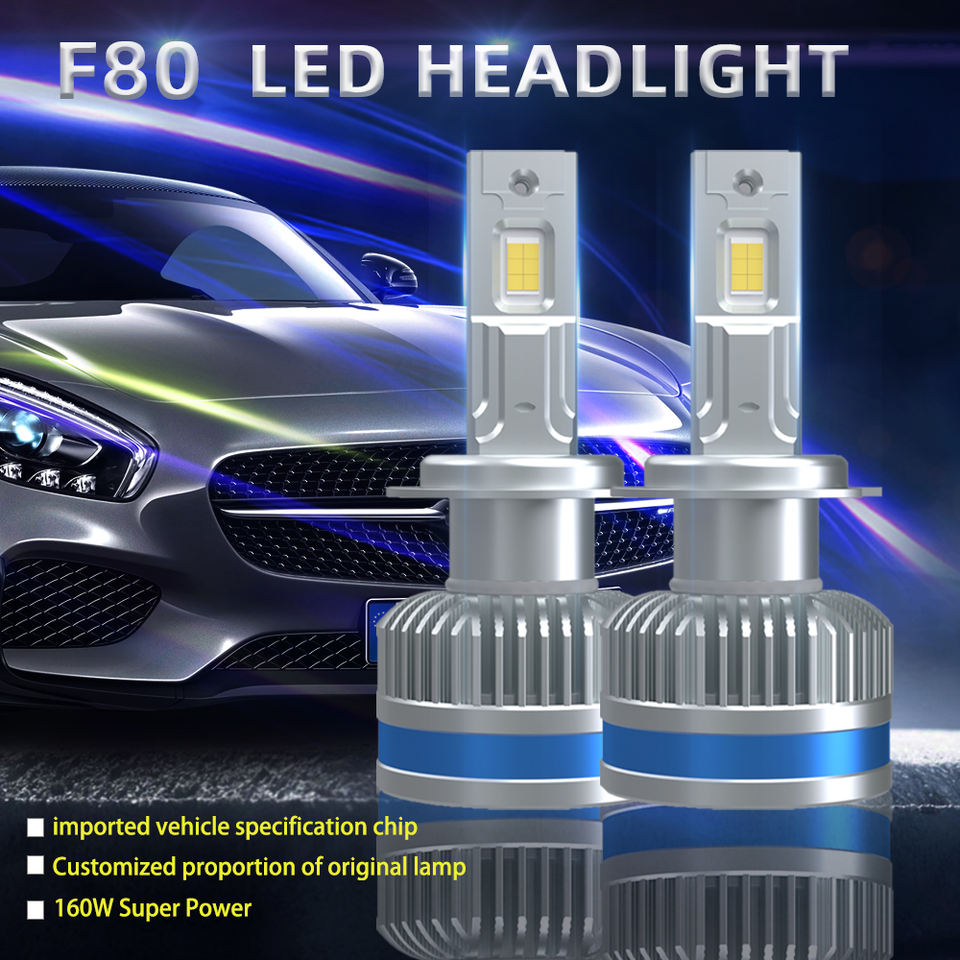 Sistema di Illuminazione Auto F80, Kit LED H7 160W 40000LM 3000k 4500k 6500k 8000k, 3575 Chip Canbus, Lampadine LED per Fari Auto
