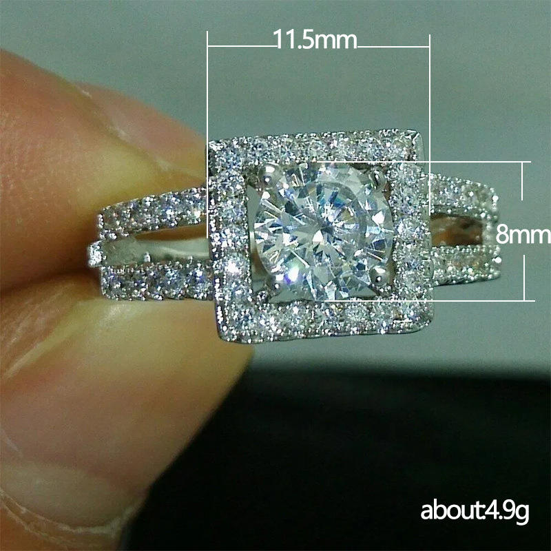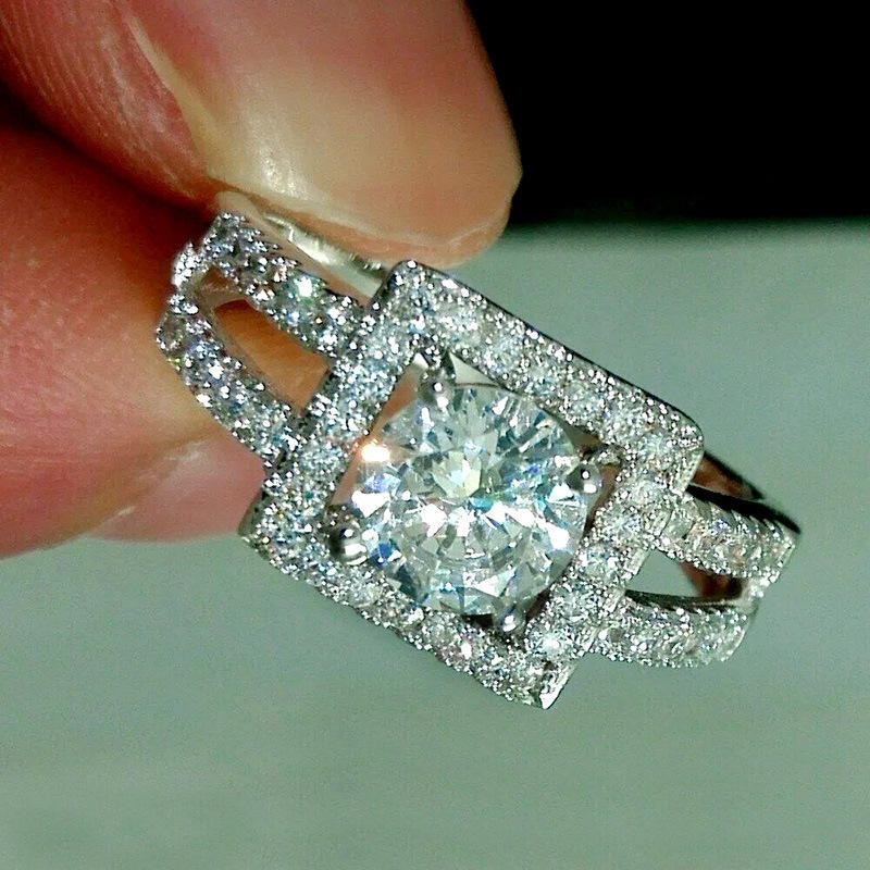 F864 Women's White Gold Diamond Engagement Ring Round Brilliant Cut Natural D Color Halo Design
