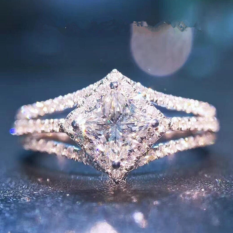 Anello con Diamante Taglio Principessa F885 in Oro Bianco Naturale Colore D Anello di Fidanzamento da Donna con Diamanti Laterali