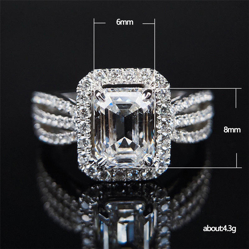 F900 Women's White Gold Emerald Cut Diamond Engagement Ring With Natural D Color Main Stone And Side Diamonds