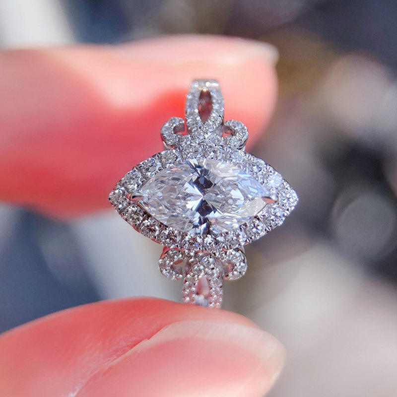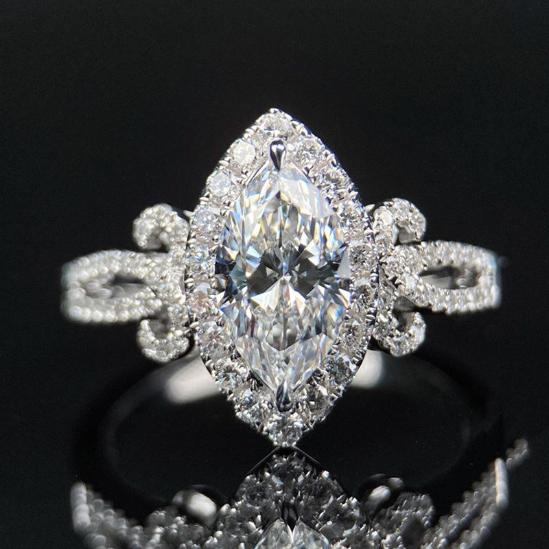 F901 Platinum Marquise Cut Diamond Ring Natural D Color Women's Engagement Jewelry With Side Diamonds