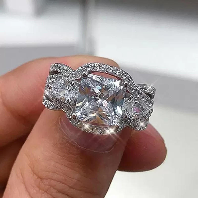 F927 Women's White Gold Diamond Ring Princess Cut Natural Diamond Engagement Ring D Color Side Stones