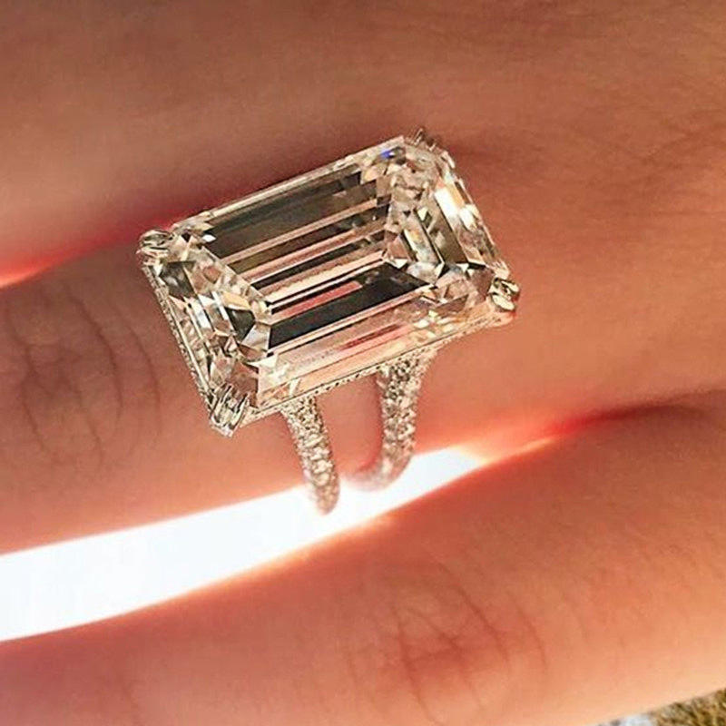 Anello con Diamante Taglio Smeraldo F933, Pietra Naturale, Stile Classico, Anello di Fidanzamento per Donna