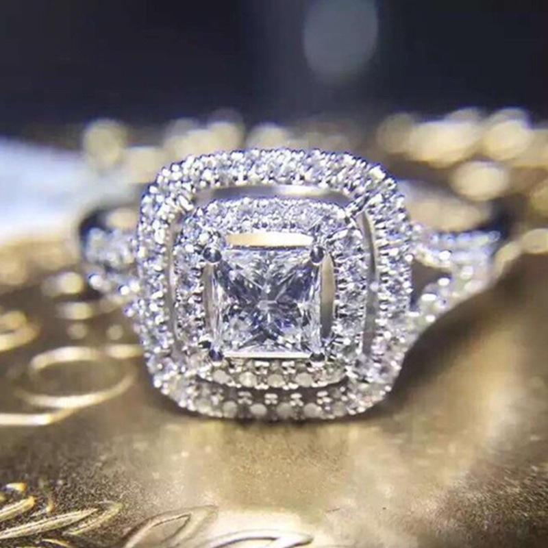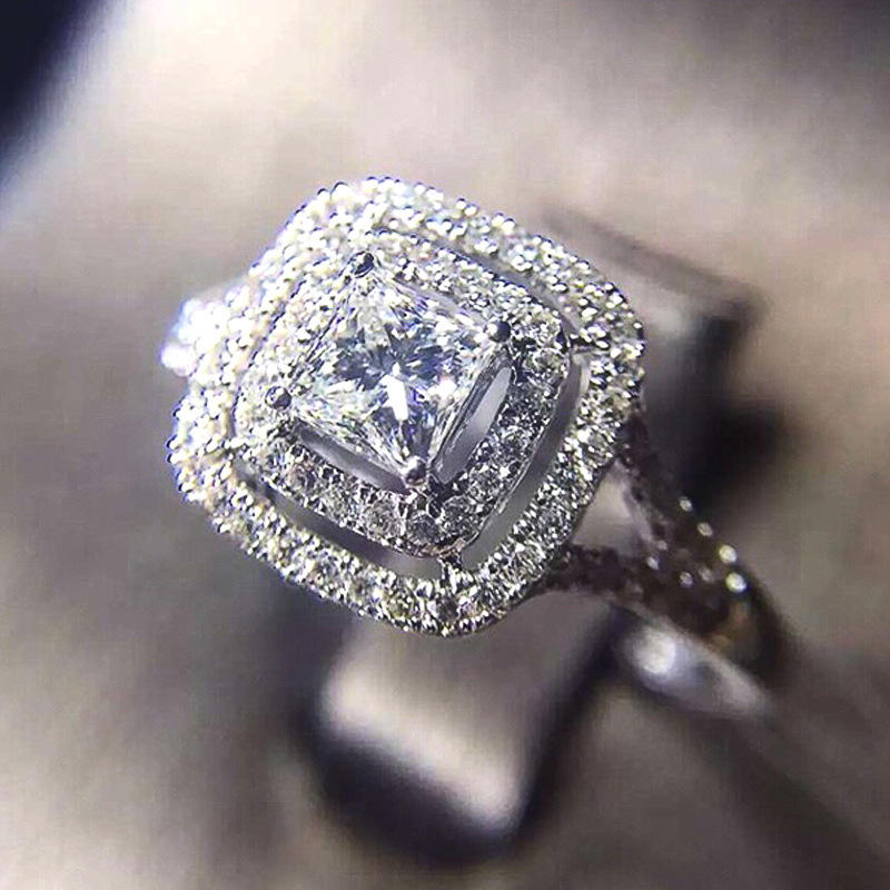 F961 Princess Cut Diamond Ring Natural White Gold G Color Engagement Women's Jewelry