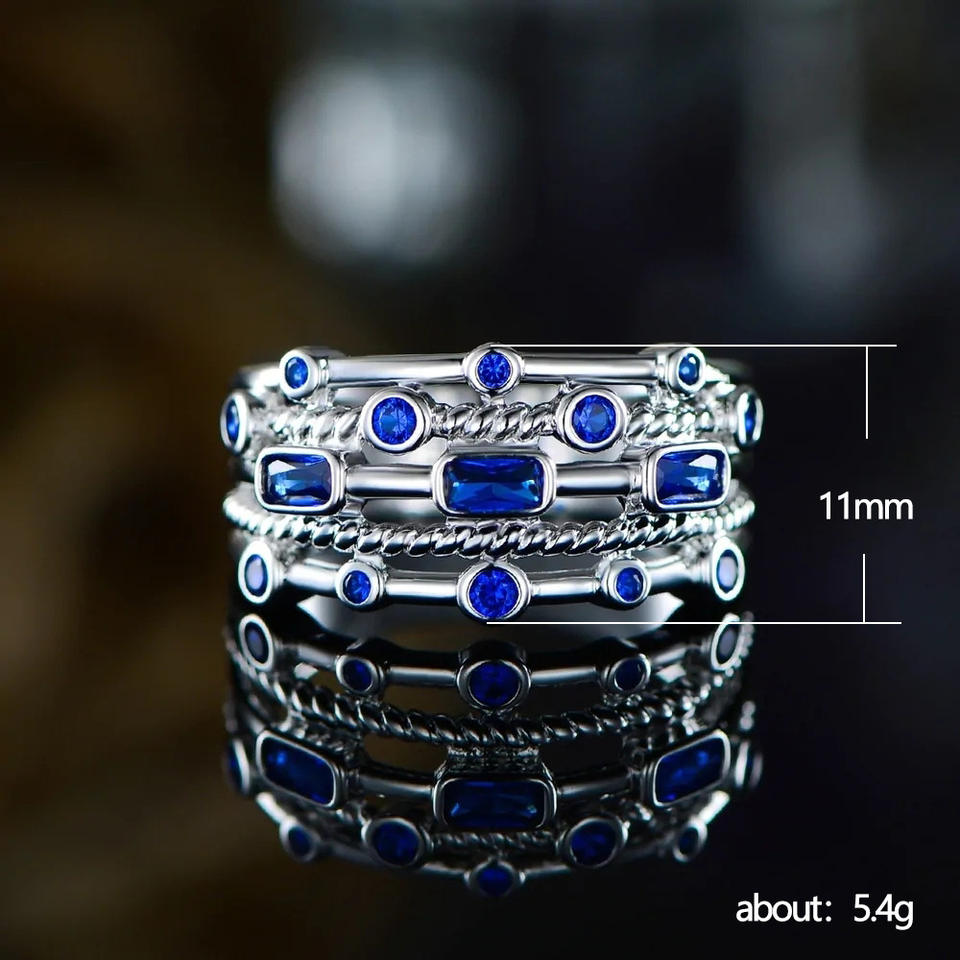 F966 Geometric Sapphire Ring 925 Silver Bezel Setting Unisex Fine Jewelry Everyday Wear