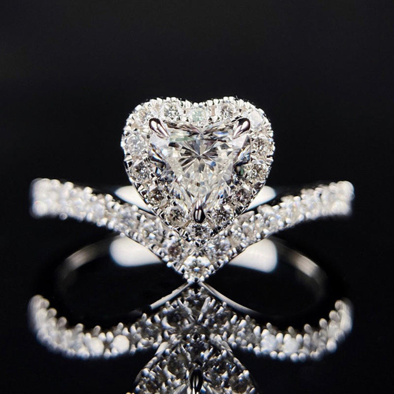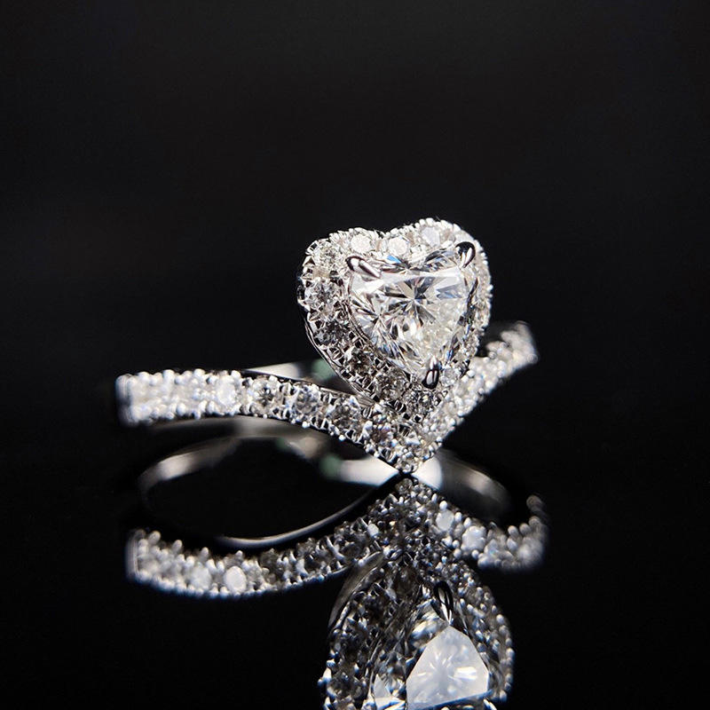 F973 Women's White Gold Heart Cut Diamond Engagement Ring Natural D Color Side Diamonds