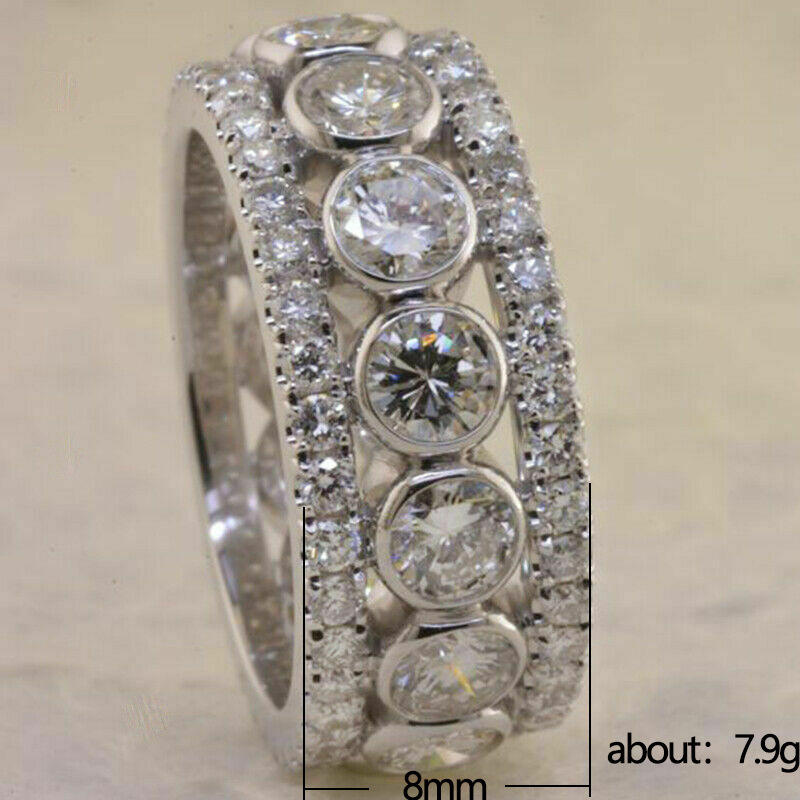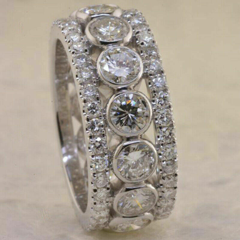 F978 Women's White Gold Diamond Ring Round Brilliant Cut Natural G Color Engagement Band With Side Diamonds