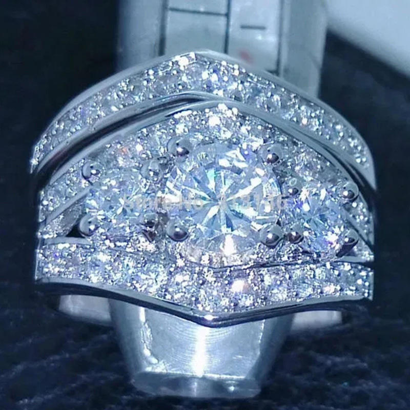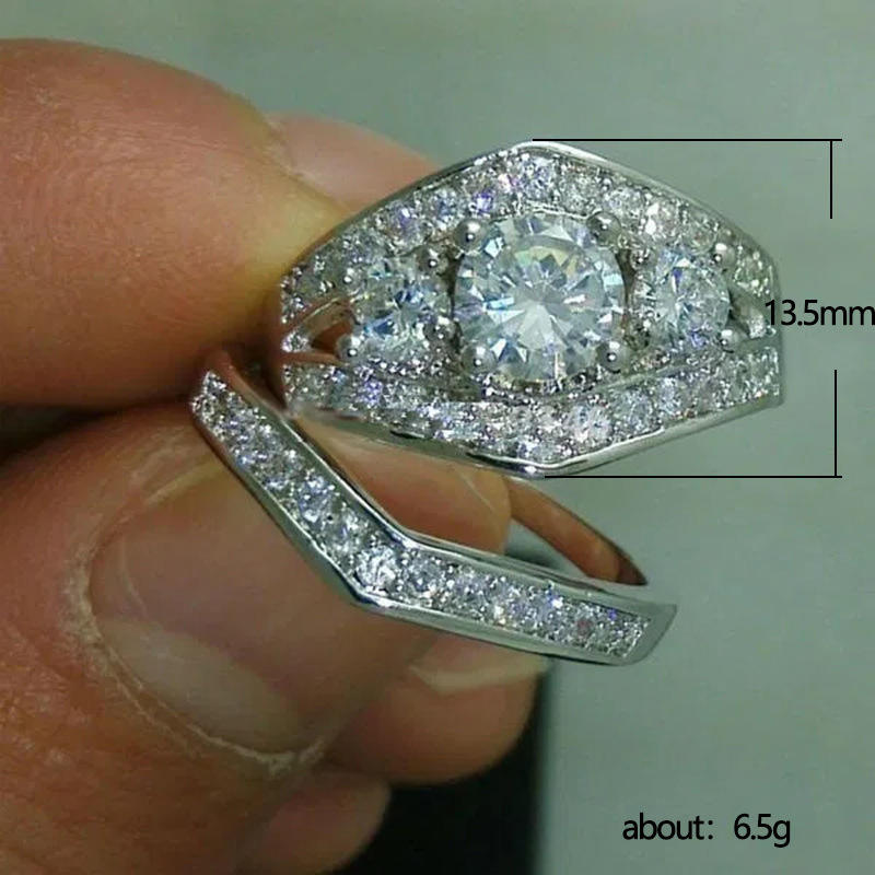 F980 Women's White Gold Diamond Ring Round Brilliant Cut Natural D Color Engagement Jewelry With Side Diamonds