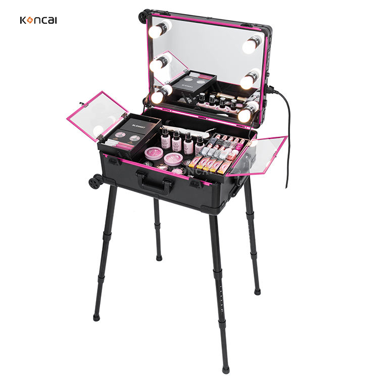 Famosa factory Koncai classica 4 dimensioni di Beauty Case a LED illuminato Rolling Cosmetic Organizer Makeup Studio Box