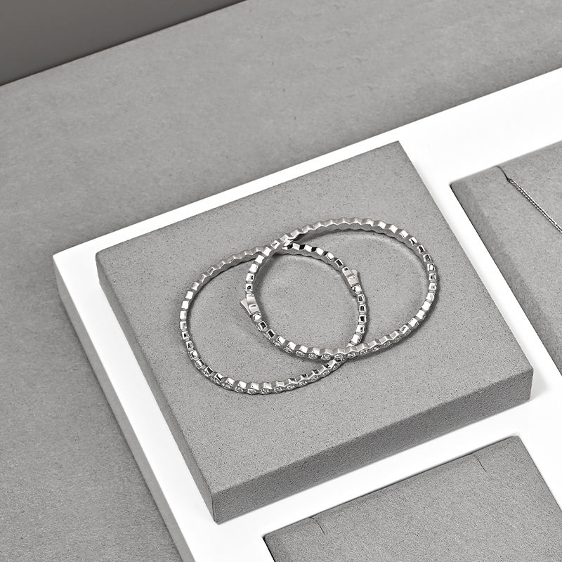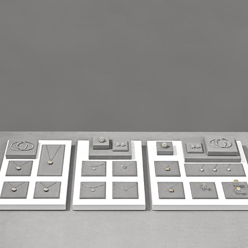 FANXI di lusso grigio microfibra customizzato vetrina espositore gioielli Set anello Display espositore gioielli per negozio al dettaglio