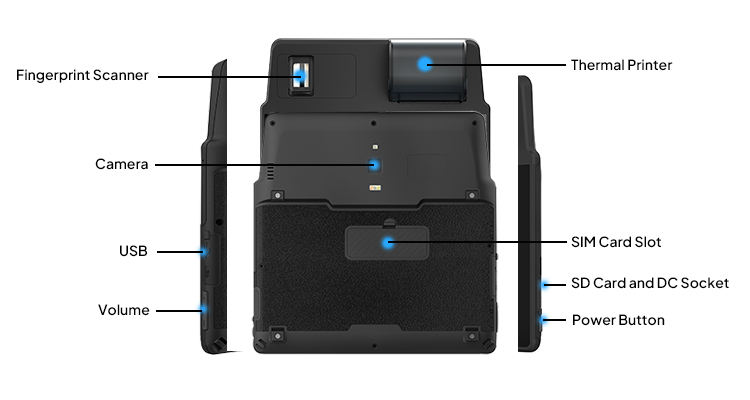 Tablet con Stampante Termica da 8'' Certificato FBI, con FAP20, Lettore di Impronte Digitali Morpho, RFID, NFC, MRZ, Batteria da 10000mAh per Registrazione Elettorale