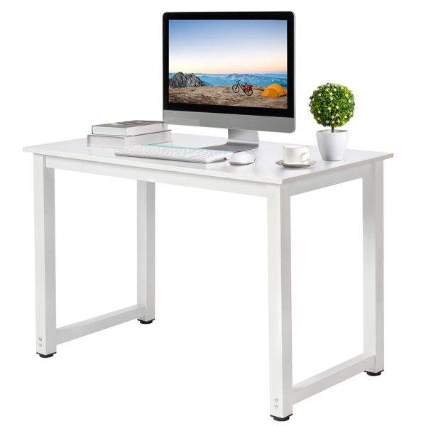 Scrivania per computer FCH 110 cm, piano bianco + struttura in tubi bianchi con piedini in acciaio triaminico, scrivania per computer elegante e resistente in truciolato P2