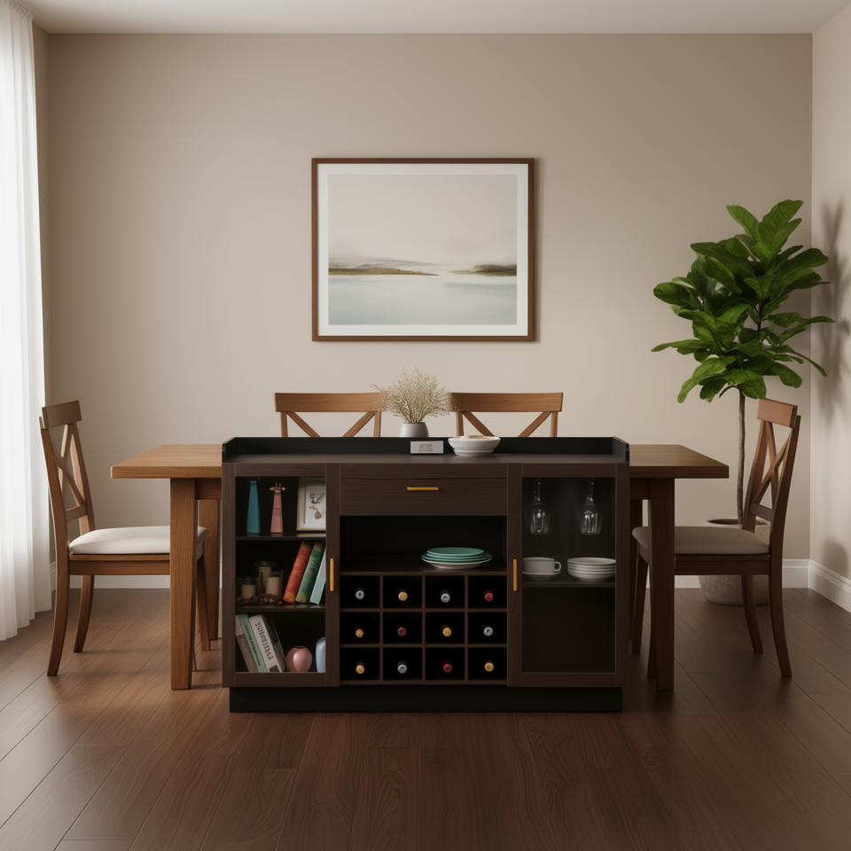 Credenza Portabottiglie FCH per 12 Bottiglie con Doppia Porta in Vetro e Cassetto Singolo, Design Moderno per Arredamento Casa