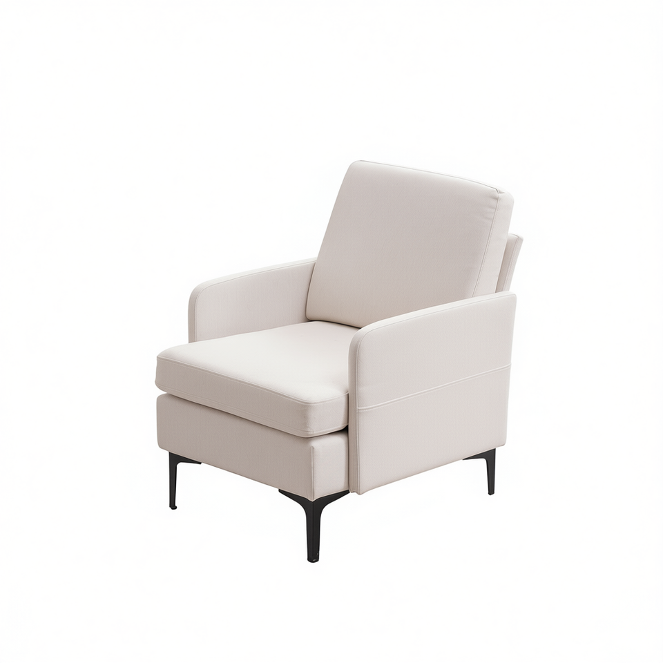 Poltrona Chaise Longue Singola FCH Comoda in Tessuto Beige con Gambe Affusolate, Arredamento Moderno per Soggiorno