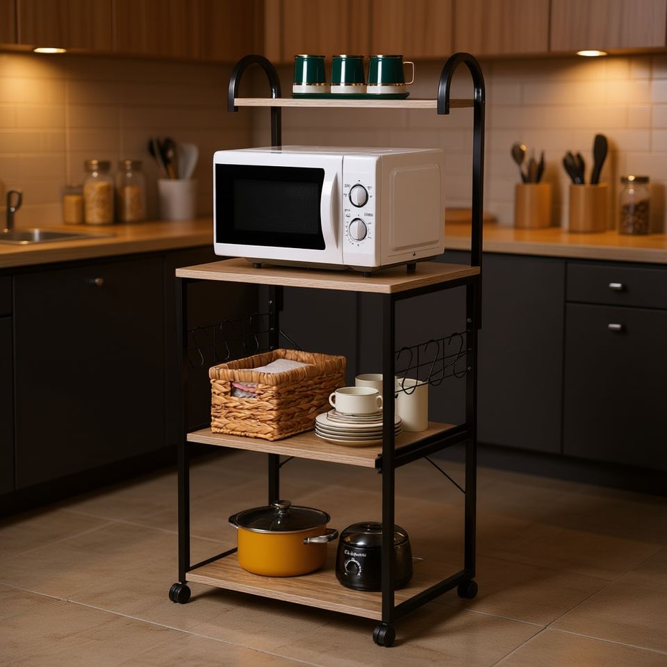 Artisasset Scaffale da Cucina a 4 Ripiani in Metallo con Supporto per Microonde, Portabottiglie, Scaffale per Pasticceria, Design Industriale Autoportante
