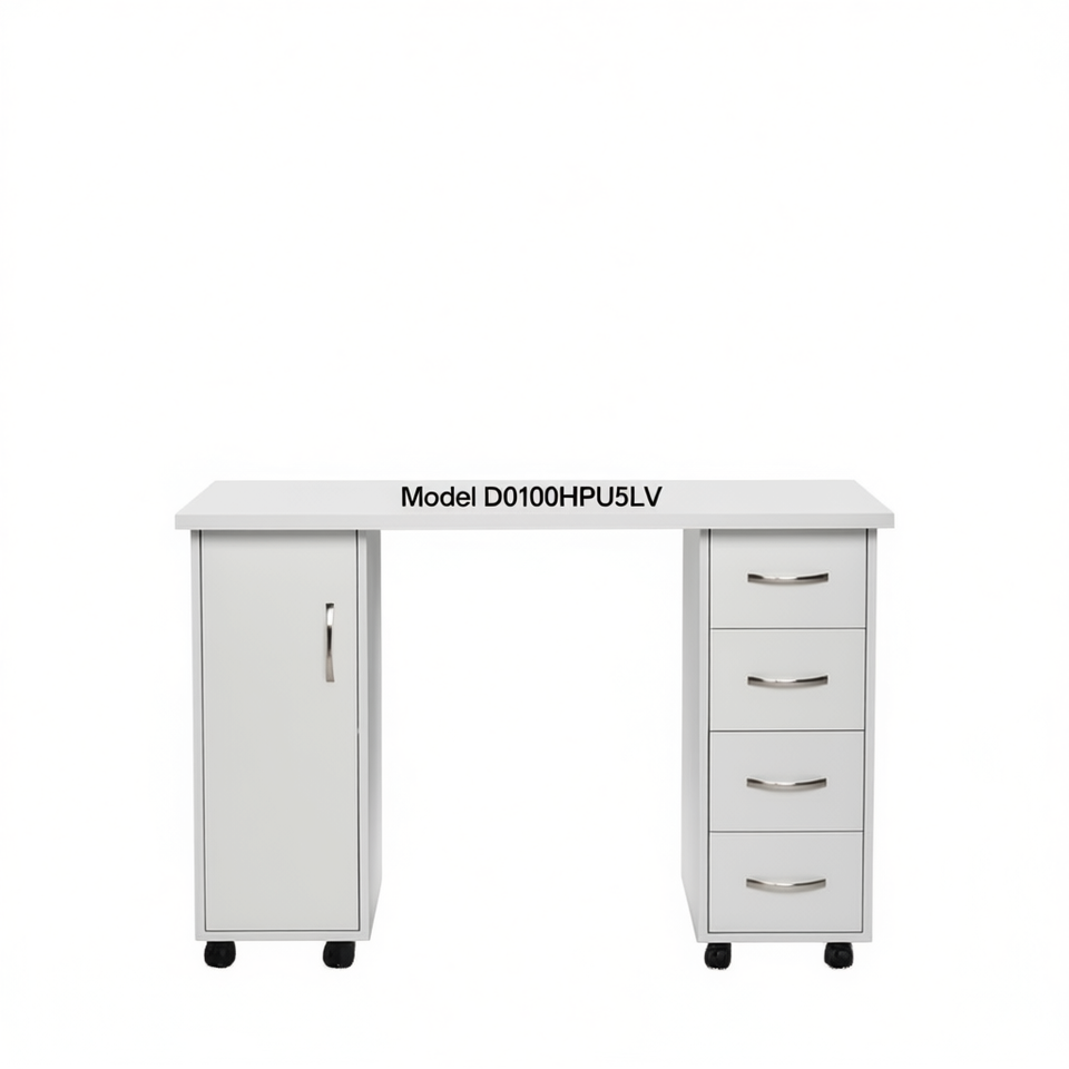 FCH White Modern Manicure Nail Table with 4 Drawers and Cabinet for Nail Care & Pedicure Services Model D0100HPU5LV